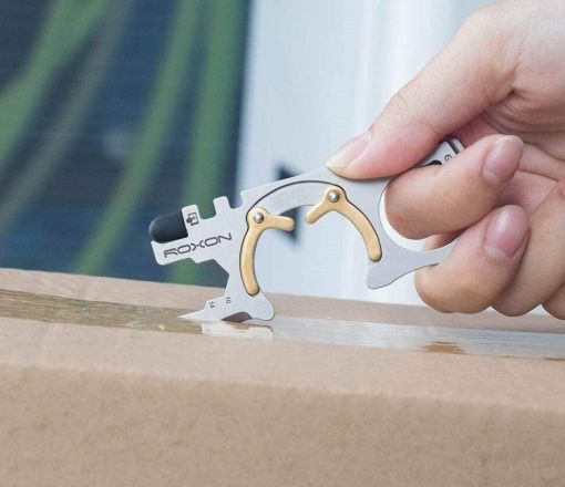 Мультитул Roxon – не только эффективный, но и ультракомпактный инструмент, который помещается в ладони. Его габариты составляют 88 х 36 х 2.5 миллиметров, а вес – всего 27 грамм. Изделие неощутимо при ношении в кармане и может цепляться на пояс или сумку, как брелок, что расширяет варианты его транспортировки.