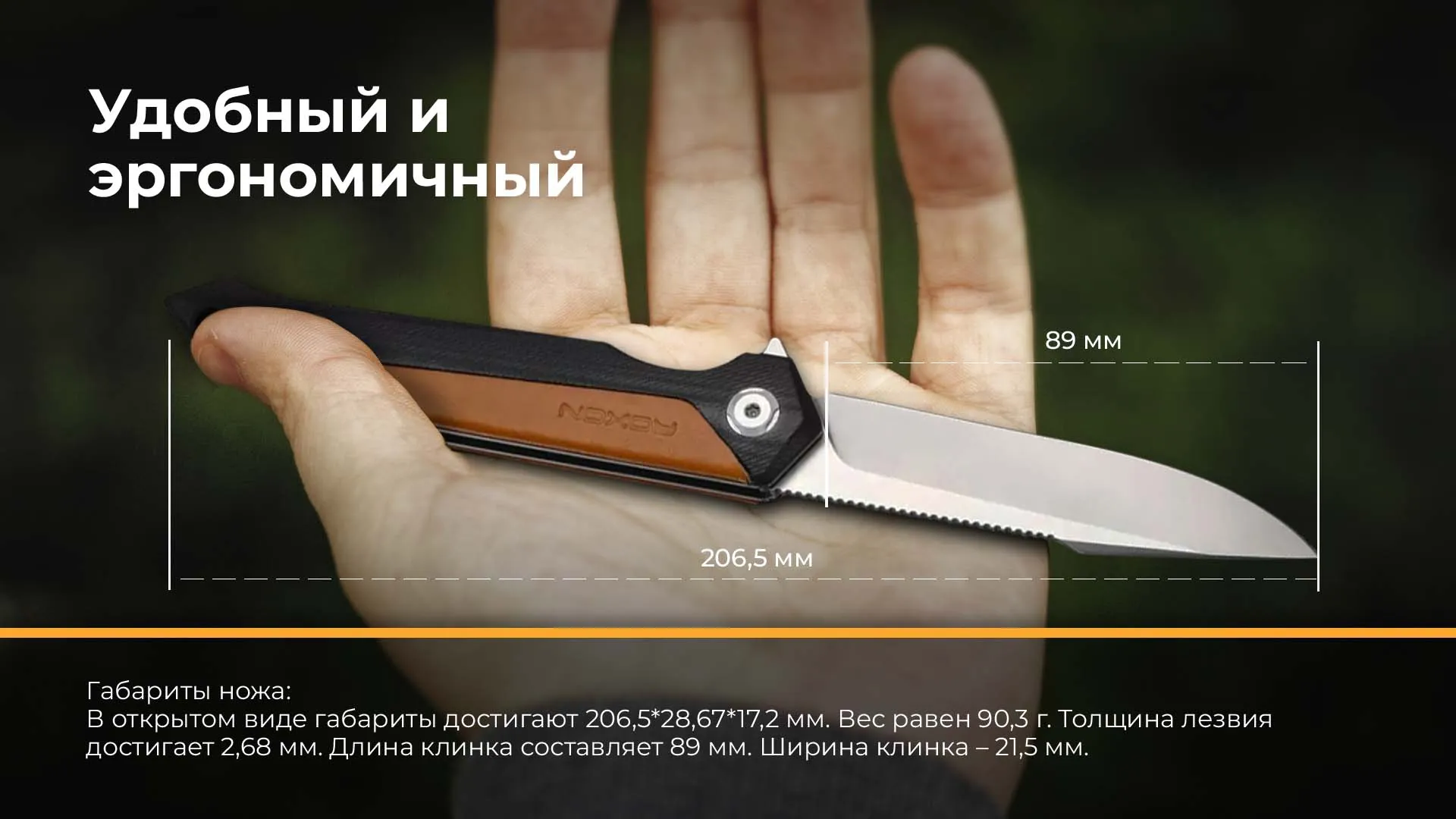 Это мощный и острый инструмент. Удобно применять для нарезания, строгания, измельчения, обдирания чего-либо, выковыривания. Продолговатый и рельефный подпальцевый упор на лезвии способствует удобной эксплуатации. Нож компактно складывается, и помещается в карман – он маленький по своим размерам, лёгкий и эргономичный.