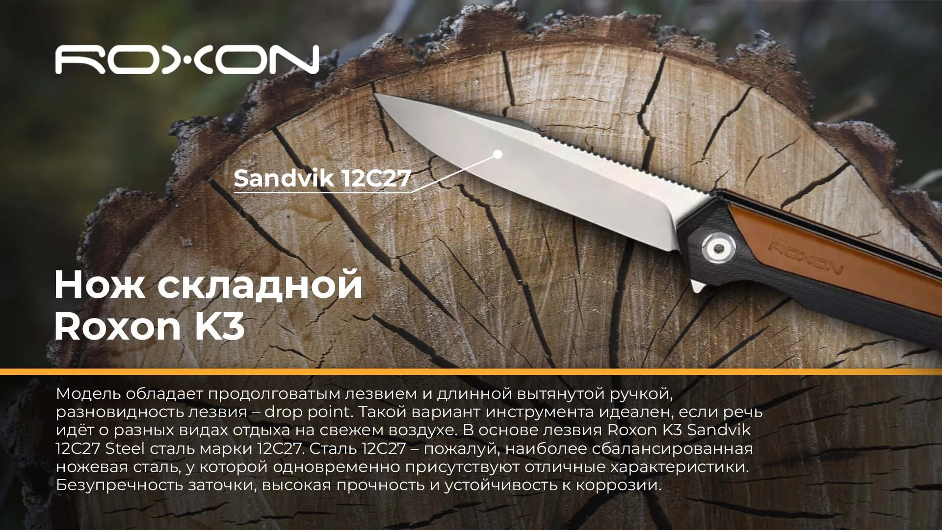 Описание ножа Roxon K3 Sandvik 12C27 Steel: